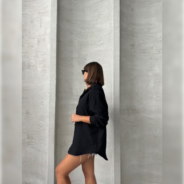 Siyah Oversize Uzun Kollu Müslin Gömlek